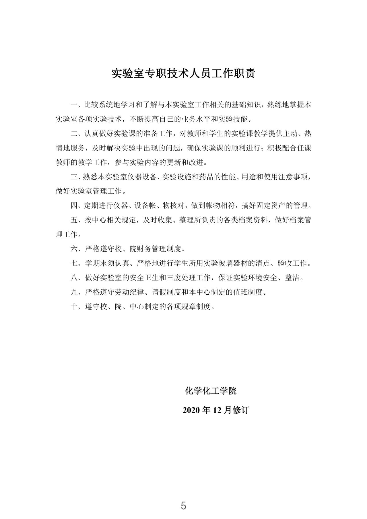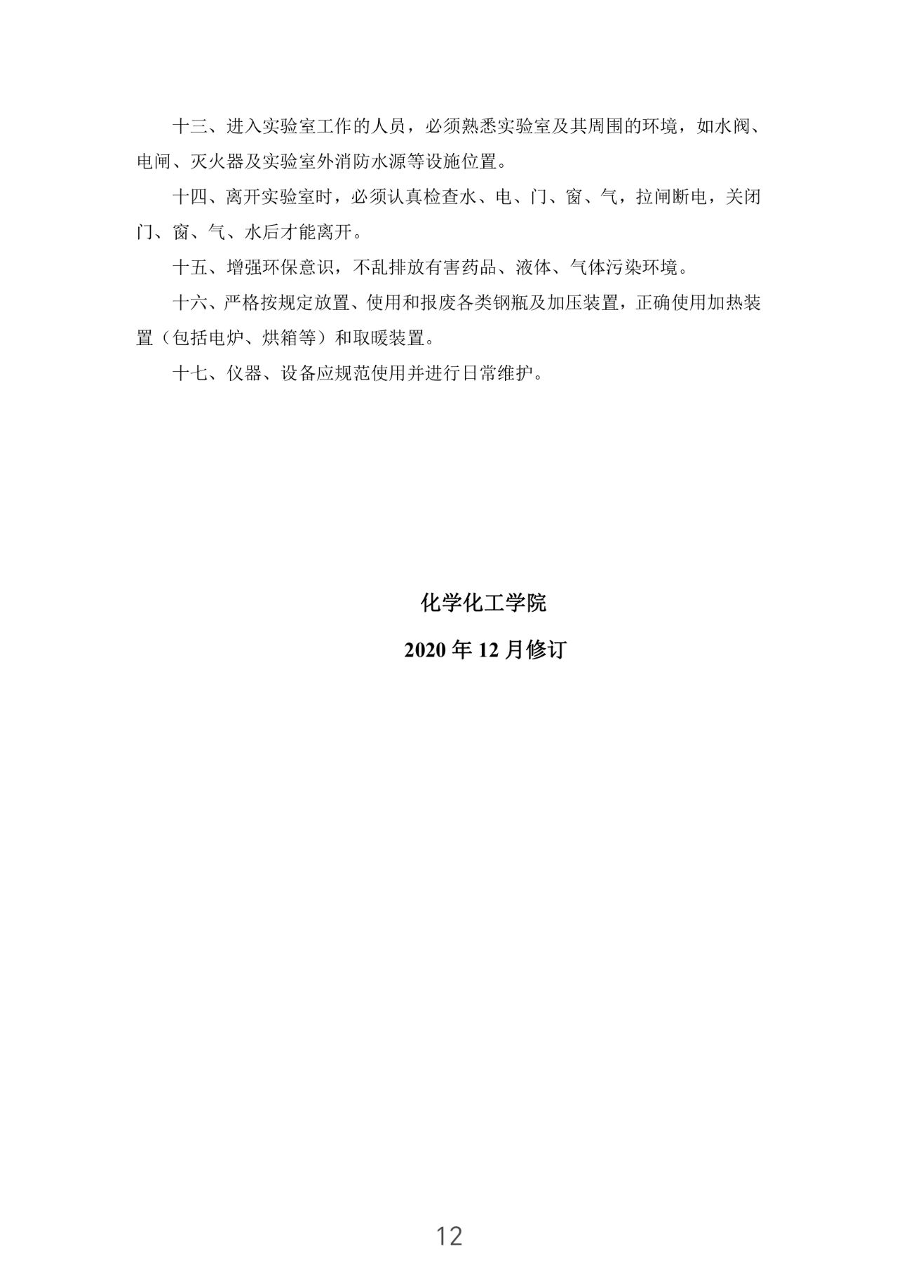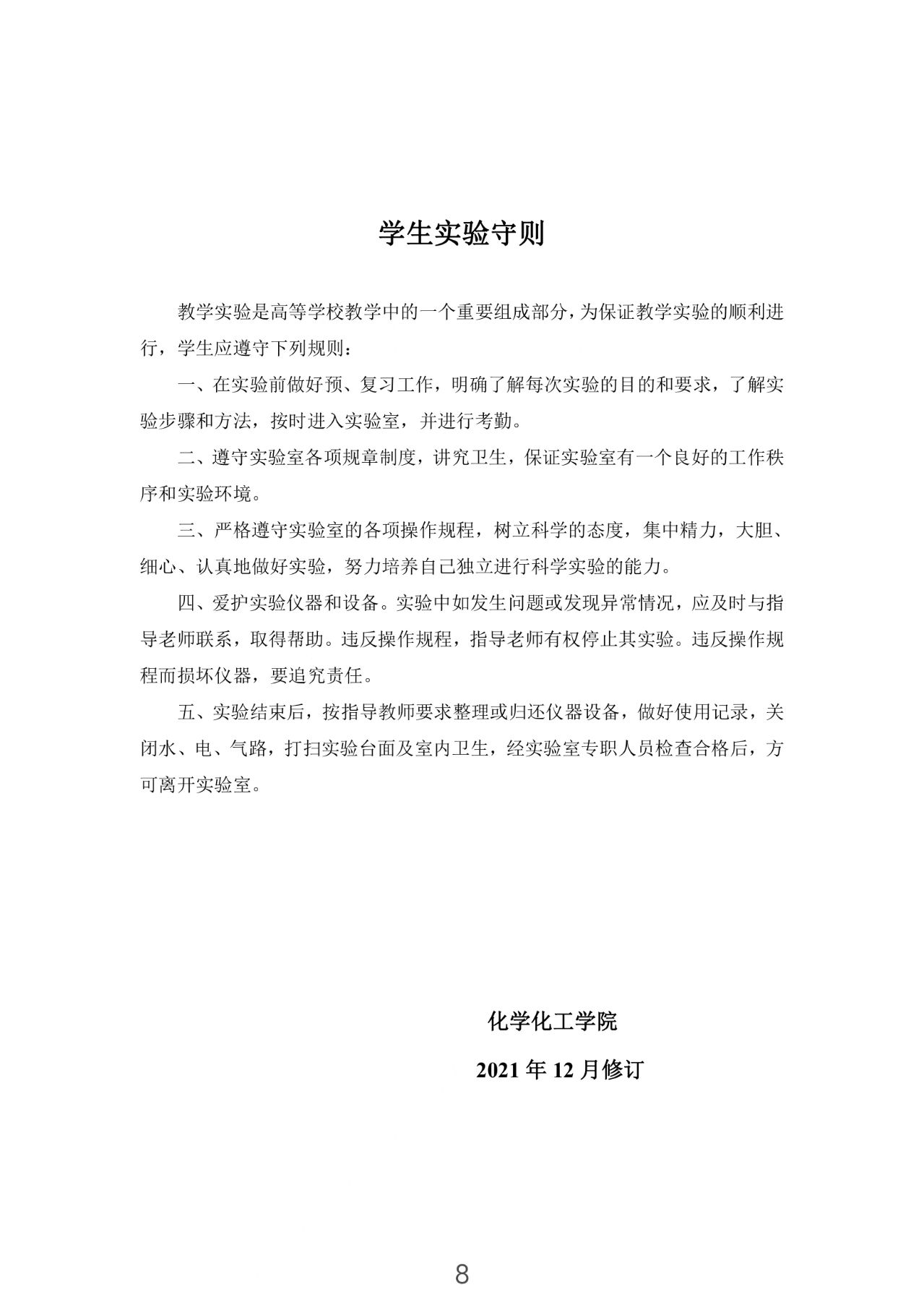 化学化工学院实验室规章制度